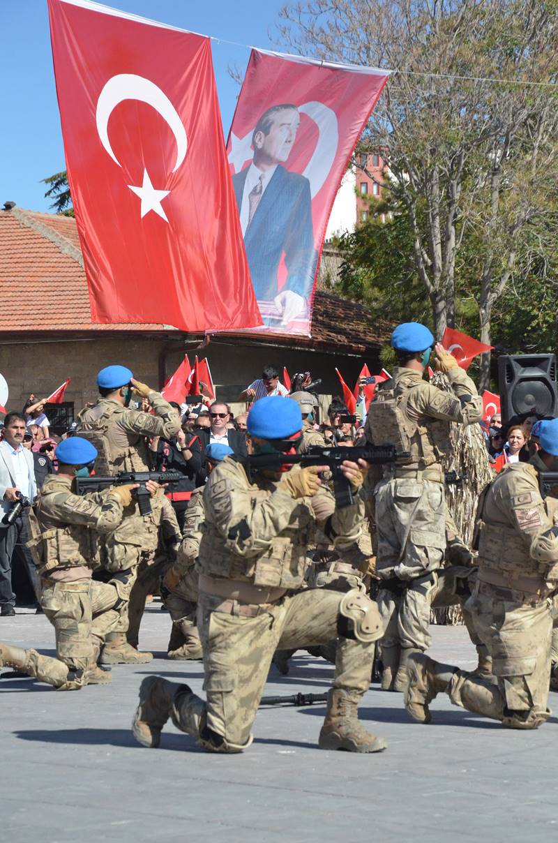 Törenler Cumhurbaşkanı Recep Tayyip Erdoğan’ın Bayram mesajının okunması, öğrencilerin şiir okumaları ve ödül töreni, Askerlerimizin gösterileri ve Geçit Töreni ile sona erdi.