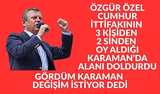 Karaman’ın uzun yıllardır iktidar partilerinin güçlü olduğu illerden biri olarak gösterildiğini belirten Özel, “Karaman’a gireceğiz deyince ‘orası AK Parti’nin kalesidir’ dediler. Ama bugün bu meydanı görünce, meydana sığmayan Karamanlıları görünce iyi ki Karaman’a gelmişiz dedim. Karaman kimsenin kalesi değildir; milletin kalesidir” ifadelerini kullandı.