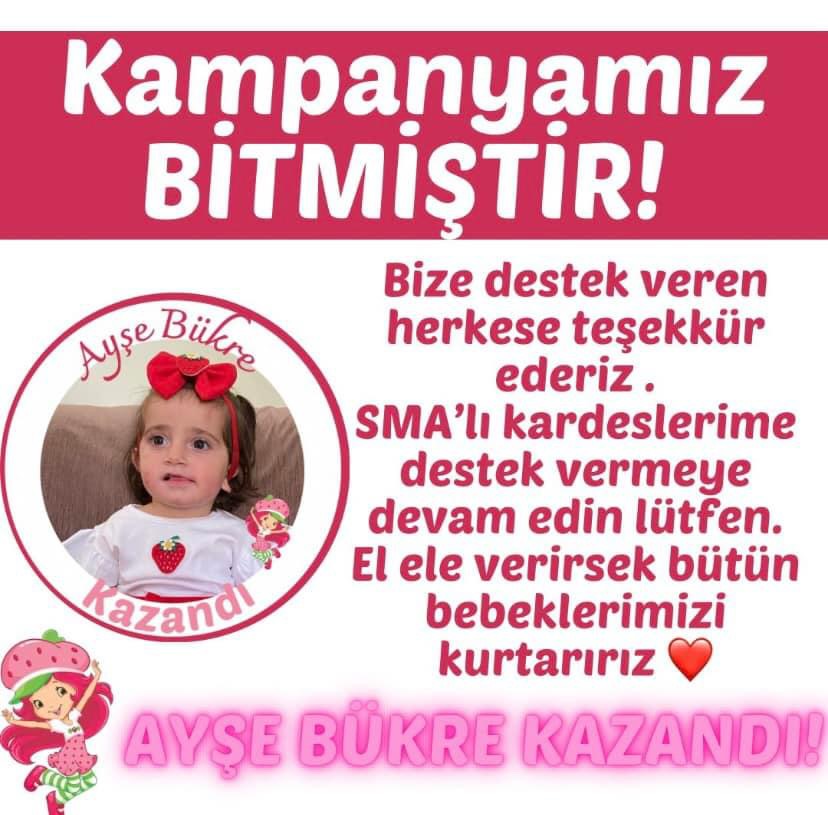Polis memuru bir baba ile ev hanımı bir annenin 3. Çocuğu olarak dünyaya gelen ve henüz 15 günlükken sma Tip-1 teşhisi konulan Ayşe Bükre’nin tedavisi için gereken 1.819.500 dolara ihtiyaç vardı. Aile tarafından karaman Valiliği’nin onayıyla başlatılan yardım kampanyasında istenilen hedefe bir türlü ulaşılamamış gereken para toplanamamıştı.Birkaç gün önce gazetemizde gündeme getirdiğimiz polis memuru baba Süleyman Yaman’ın kızımı kurtarın çığlıklarına yardımseverler kayıtsız kalmadı. Sosyal medya bugün bu babayı konuştu. SMA hastası ayşe bükre Yaman’ın babası Süleyman Yaman’ın videosu elden ele dolaştı. Ayşe Bükre için herkes seferber oldu ve o para toplandı.4 gün önce %42 olan yardım kampanyası miktarı dün akşam itibariyle % 100’lük seviyeye ulaşarak tedavi için gereken paranın tamamı bağışçıların desteğiyle toplanmış oldu.4 gün önce kızını kurtarmak için çırpınan ama elinden bir şey gelmediği için çaresizlikten ağlayan baba Süleyman Yaman, kampanyanın tamamlanmasıyla bu kez mutluluk gözyaşları döktü.19 Ekim Perşembe akşamı saat 22.30 itibariyle yapılan canlı yayında baba Süleyman Yaman, kampanyanın başarıyla sonuçlandığını duyurdu.Baba Yaman, “%100 olduk. Canım ailem biz başardık. Hani hep diyorduk ya sizler sayesinde başaracağız diye işte biz bu gün başardık. Aylardır emek emek işlediğimiz kampanyamız bugün tamamlandı. Kelimelerin kifayetsiz kaldığı bir an yaşıyoruz. Mutlulukdan ağlamak hiç bu kadar güzel olmamıştı. Çok yorulduk ümitsizliğe kapıldık ama asla pes etmedik. Kampanyamız boyunca bize destek olan ellerimizi bırakmayan tüm gönüllü ailemize, sesimizi duyan herkese minnettarız. Sizler sayesinde başardık. Biz bugün kazandık. Ayşe Bükre artık Dubai yolcusu” diyerek mutluluk gözyaşları döktü.Baba Süleyman Yaman, canlı yayında duygusal anlar yaşayarak, "Dört gün önce Ayşe Bükre'nin tedavi için yardım kampanyaısnda %42'ye ulaşabilmiştik. 4 gün gibi kısa sürede para toplandı, eğer bu kısa sürede benim kızım için bu kadar büyük bir yardım gerçekleşebiliyorsa, tüm çocuklarımız için de aynısı yapılabilir. Hala 129 SMA hastası bebeğimiz var onlarında yardıma ihtiyacı devam ediyor. Onlar için de destek olalım, yardımlarımızı sürdürelim." şeklinde konuştu.