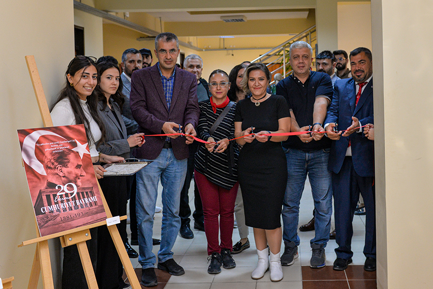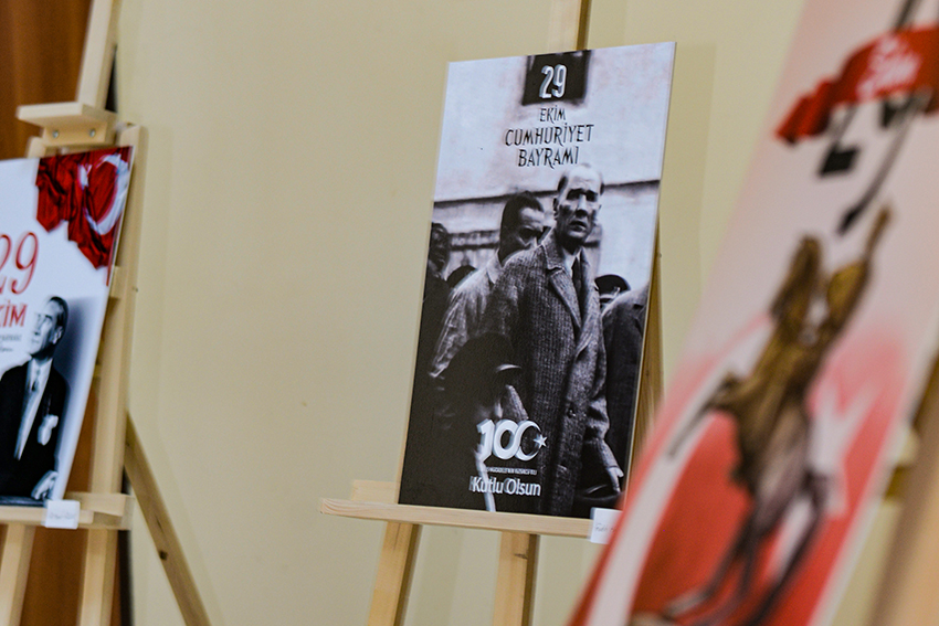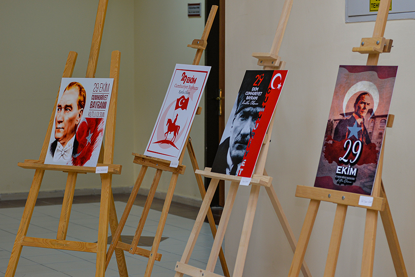 Teknik Bilimler MYO fuaye alanında düzenlenen serginin açılışı Teknik Bilimler MYO Müdürü Prof. Dr. Oktay Talaz, yüksekokul personeli ve öğrenciler tarafından yapıldı.Küratörlüğünü Öğr. Gör. Özgül Yiğit’in yaptığı ‘100. Yıl Coşkusu’ isimli sergi de Tasarım Bölümü Grafik Tasarımı Programı öğrencilerinin yaptığı 50’i aşkın tasarım sanatseverlerle buluştu.Cumhuriyetimizin 100. Yılında öğrencilerin özverili çalışmaları ile hazırlanan sergi, 1 Kasım 2023 tarihine kadar ziyaret edilebilecek.