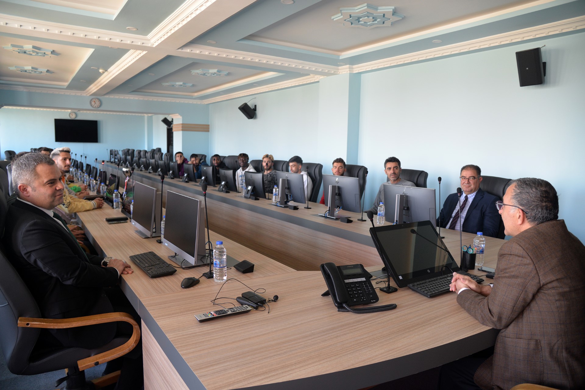 2023-2024 yılı Türkiye Üniversite Sporları Federasyonu (TÜSF) tarafından organize edilen ve Necmettin Erbakan Üniversitesinin ev sahipliğinde gerçekleştirilen müsabakalarda KMÜ Futbol Takımı tüm maçlarını kazanarak birinciliği elde ettiÜniversitelerarası Bölgesel Lig Futbol Müsabakasına Karamanoğlu Mehmetbey Üniversitesi’nin yanı sıra Necmettin Erbakan Üniversitesi, Kayseri Üniversitesi, Konya Gıda Tarım Üniversitesi, Kırıkkale Üniversitesi ve Niğde Ömer Halisdemir Üniversitesi’nden yaklaşık 150 sporcu katıldı.Müsabakaların tamamlanmasının ardından Karaman’a dönen futbol takımı oyuncuları Spor Bilimleri Fakültesi Dekanı Prof. Dr. Sefa Lök eşliğinde Rektör Prof. Dr. Mehmet Gavgalı’yı makamında ziyaret etti.Burada Spor Bilimleri Fakültesinin çalışmalarını anlatan Dekan Prof. Dr. Sefa Lök, “Gerek bireysel sporlarda gerekse de takım sporlarında öğrencilerimizin elde ettiği başarıların haklı gururunu yaşıyoruz. Başta olimpiyatlar olmak üzere uluslararası ve ulusal müsabakalarda ülkemizi, şehrimizi ve üniversitemizi başarıyla temsil eden öğrencilerimizle iftihar ediyoruz. Üniversitelerarası Bölgesel Lig Futbol Müsabakasındaki namağlup şampiyonluğumuz hayırlı olsun.” dedi.Konya’daki organizasyonda oynadığı tüm maçları kazanarak Karaman’a birincilik kupasıyla dönen futbol takımının teknik heyetini ve tüm oyuncularını tek tek kutlayan KMÜ Rektörü Prof. Dr. Mehmet Gavgalı ise üniversitenin her alanda olduğu gibi sporda da elde ettiği başarıların mutluluğunu yaşadıklarını belirtti. Gavgalı “Bugüne kadar bünyesinden olimpiyat, dünya ve Avrupa şampiyonları çıkaran Spor Bilimleri Fakültemizde görev yapan akademisyenlerimize ve öğrencilerimize kolaylıklar diliyorum. İnanıyorum ki önümüzdeki süreçte yeni madalyalar ve kupalarla bizleri gururlandırmaya devam edeceklerdir.” ifadelerini kullandı.Rektör Yardımcısı Prof. Dr. Nevzat Aydın’ın da yer aldığı ziyarette Rektör Gavgalı, takım oyuncuları ve teknik ekip ile hatıra fotoğrafı çektirdi