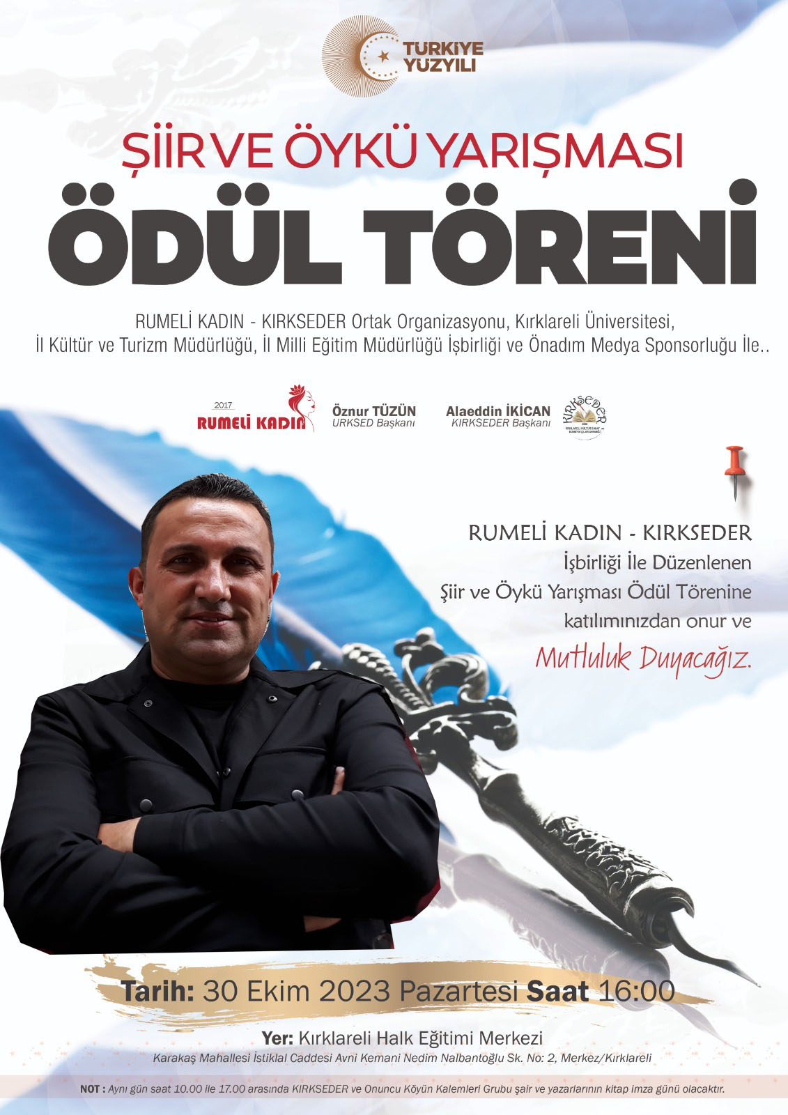 Kırklareli İl Kültür ve Turizm Müdürlüğü, Kırklareli Kültür Sanat ve Edebiyatçılar Derneği (Kırkseder) ve Rumeli Kadın Platformu ve İl Milli Eğitim Müdürlüğü işbirliği ve Önadım Medya sponsorluğunda Cumhuriyetimizin 100. yılı anısına düzenlenen Uluslararası Şiir ve Öykü Yarışmasında da Karamanlı şairimiz hem öykü dalında hem de şiir dalında birincilik ödülüne layık görüldü.